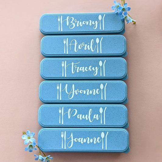 Personalised Wheat Straw Cutlery Sets | Reusable Travel Knife Fork Spoon Straw Set | Work / School Lunch Box | Plastic Free Eco-friendly