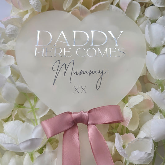 Kids Wedding Aisle Paddle Sign | Daddy Here Comes Mummy | Daddy Let's Give Mummy our last Name | Flower Girl Sign | Page Poy, Usher Sign