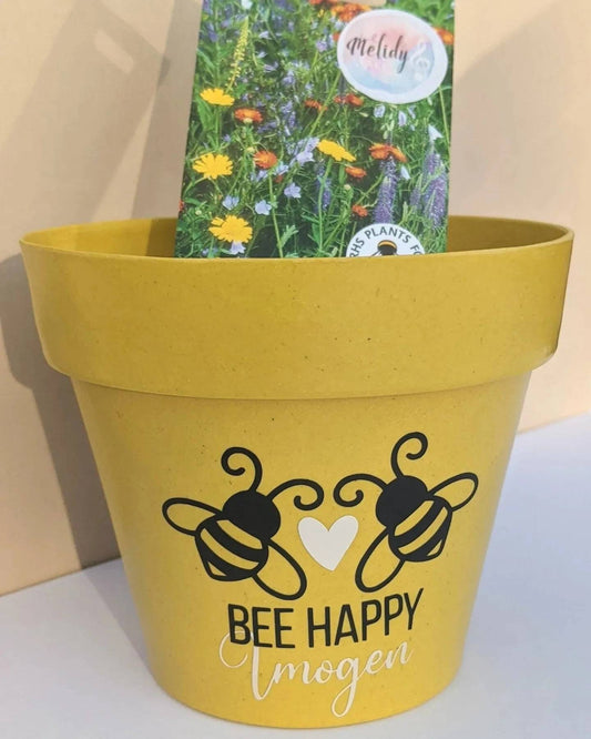 Personalised Bee Friendly Wild Flower Planting Set | Bamboo Fibre Yellow Plant Pot | Save The Bees | Garden Lover Gift | Gardener | Flowers