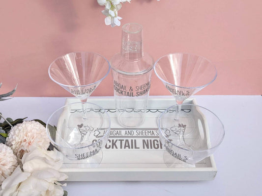 Personalised Cocktail Night Tray | Cocktail Glasses and Snack Gift Set | Girls Night In | Sofa Arm Tray | Cocktail Lover | BFF Friend Gift