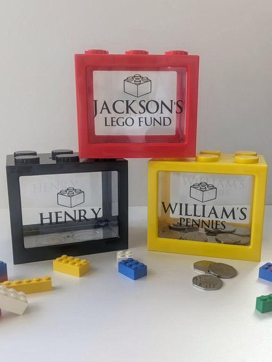 Personalised Kids Brick Money Box | Lego Lover Gift | Custom Piggy Bank| Gifts for Kids / Children | Housewarming Gift | Block Coin Bank