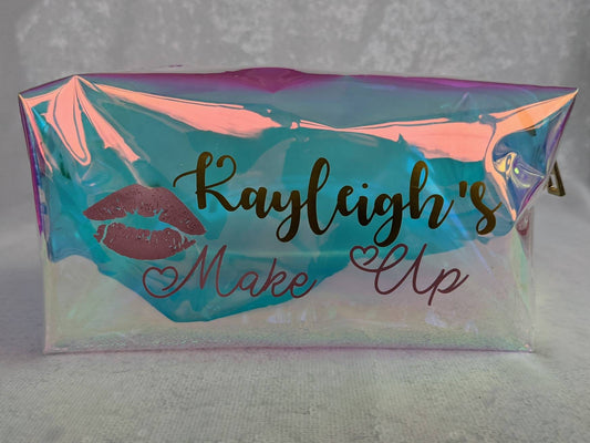 Personalised Holographic Make Up Bag | See Through Cosmetics Bag | Iridescent Toiletry Bag | Beauty Bag | Make up Pouch | Travel Make Up