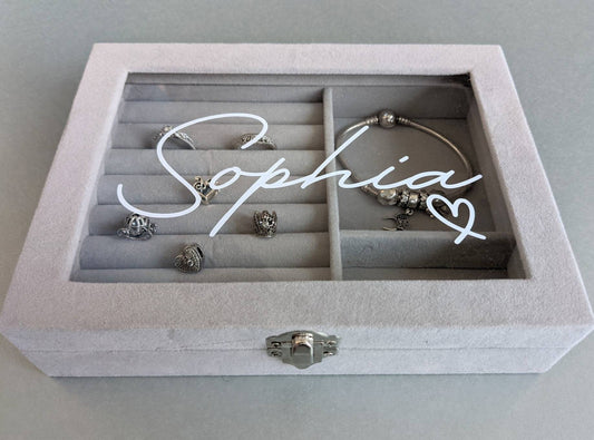 Personalised Jewellery Box | Grey Velvet Jewelry Storage | Stackable Boxes | Modern Storage | Gift for Women | Mother Wife Sister Girlfriend