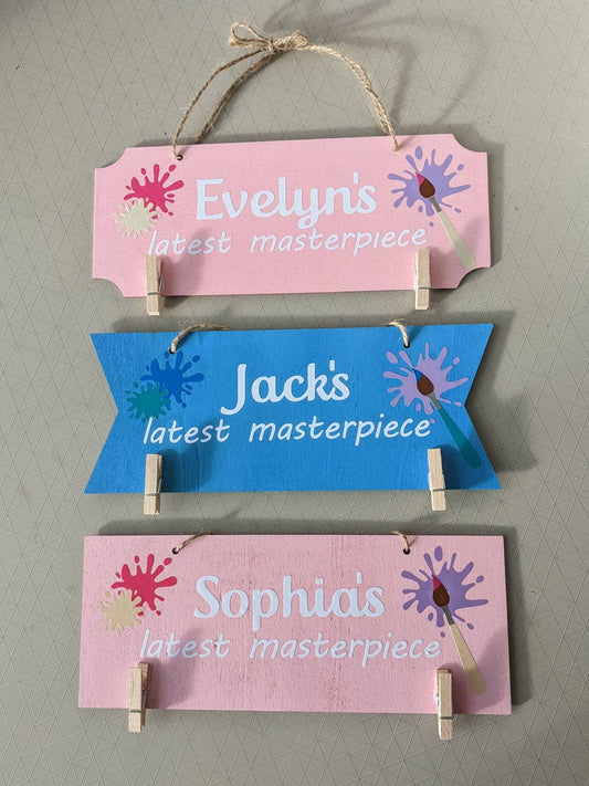 Personalised Kids Artwork Display | Children's Drawing Plaque | Child's Painting | School Artwork Board | Peg Hanging Sign | School Display