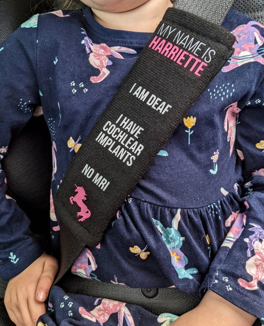 Personalised Medical Alert Car Seatbelt Cover | Autism ADHD Deaf Hearing Impaired Diabetic | SEN Safety Tool | In Case of Emergency Service
