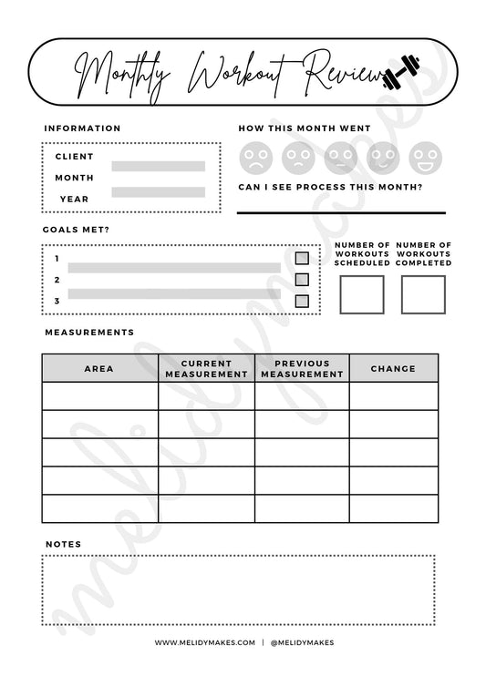 Personal Training Monthly Review | Workout Health and Fitness Tracker | Digital Planner Page | PT Business Tools | Client Worksheet Review