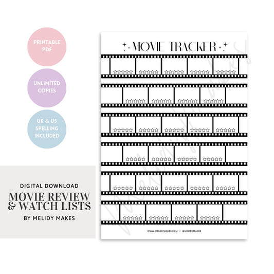 Movie Rewiew Printable | Watch List Printable Download | Digital Planning Page | Planner Page | Movie Lover Gift | Film Buff Gift