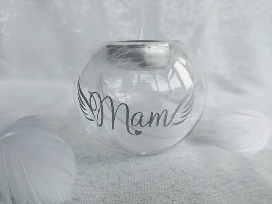 Personalised Memory Tea Light Holder | Feather Memory Gift | In Loving Memory | Memorial Candle | Loved one | Memory candle | Condolence