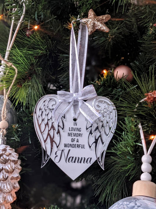 Personalised Christmas Angel Heart Tree Decoration | Feather Tree Ornament | In loving Memory | Personalised Gift | Rememberance Bauble