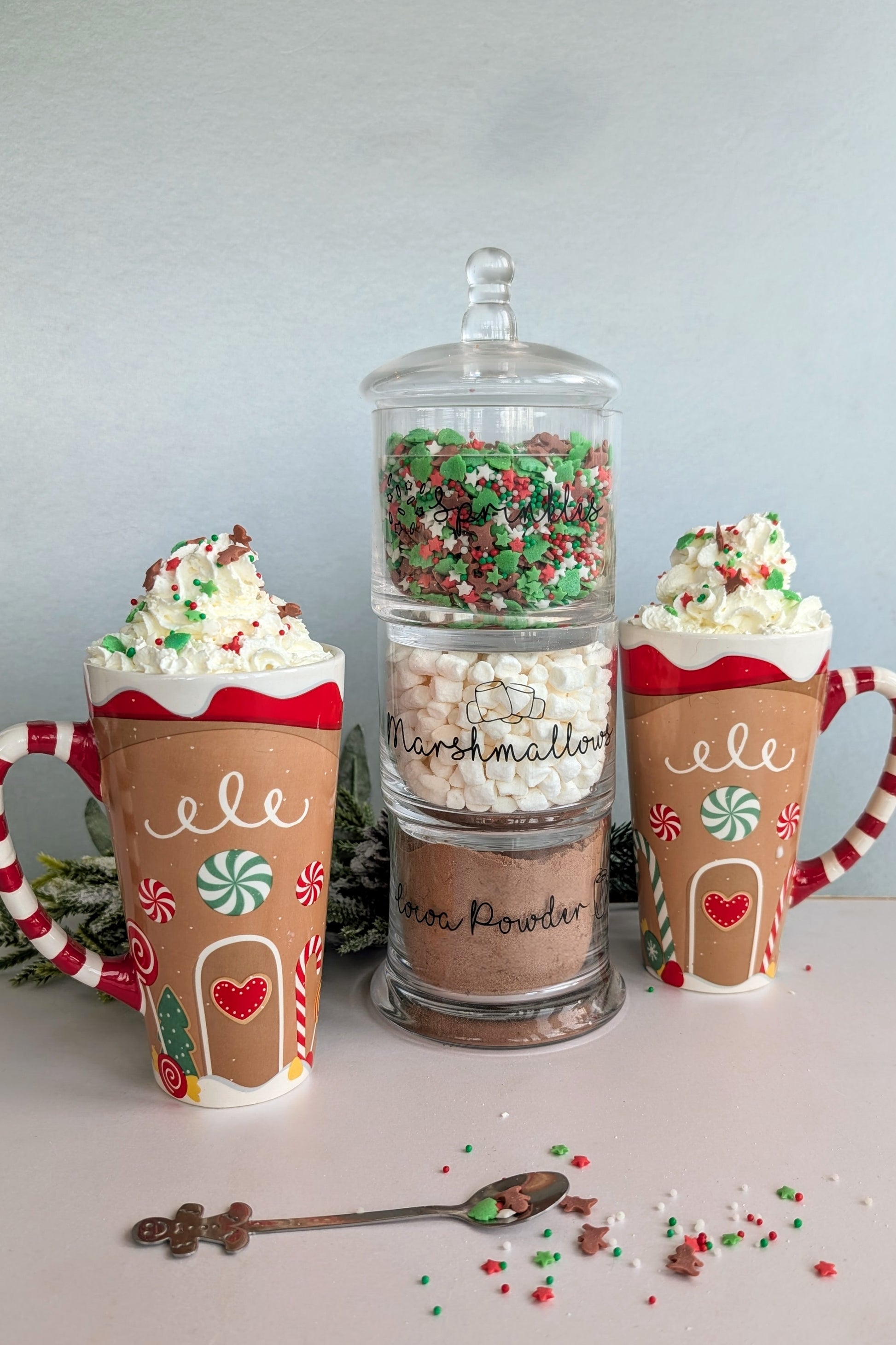 Hot Chocolate Station | Family Christmas Gift | Personalised Xmas Gift | Stacking Glass Kitchen Jars | Custom Labels | Couples Gift | Home