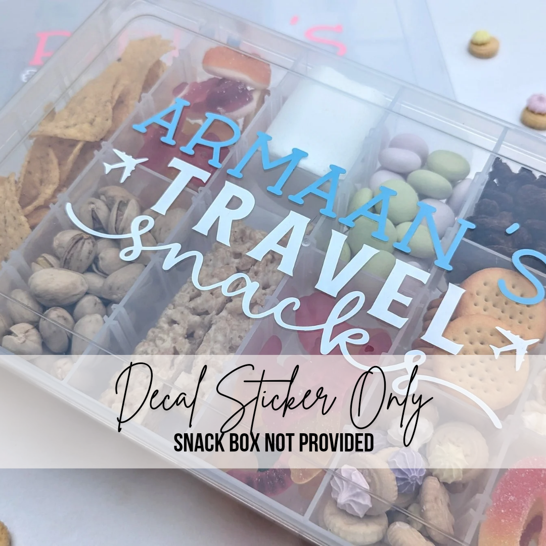 STICKER ONLY Personalised Travel Snacks Box Decal | Plane Snacks | Road Trip Snacks | Child Snack Box Holiday Gift